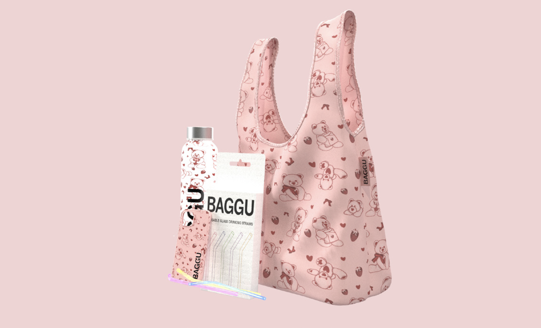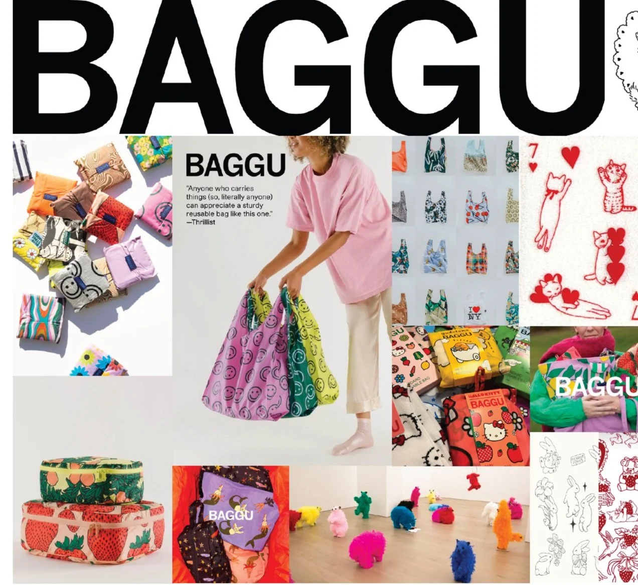 The brand that I chose to work with was Baggu. Baggu is a brand that makes different bags and accessories in fun, bright prints, but they primarily focus on reusable grocery bags. I love the designs and prints that they do, and I also love the sustainability aspect of it, so I thought it would be the perfect brand to choose. We were assigned to create three new products that did not yet exist for the brand, but still keeping it within their original branding. To fit in with the fun patterns and sustainability, I chose to create a reusable water bottle, a phone case, and a set of reusable, glass straws.
