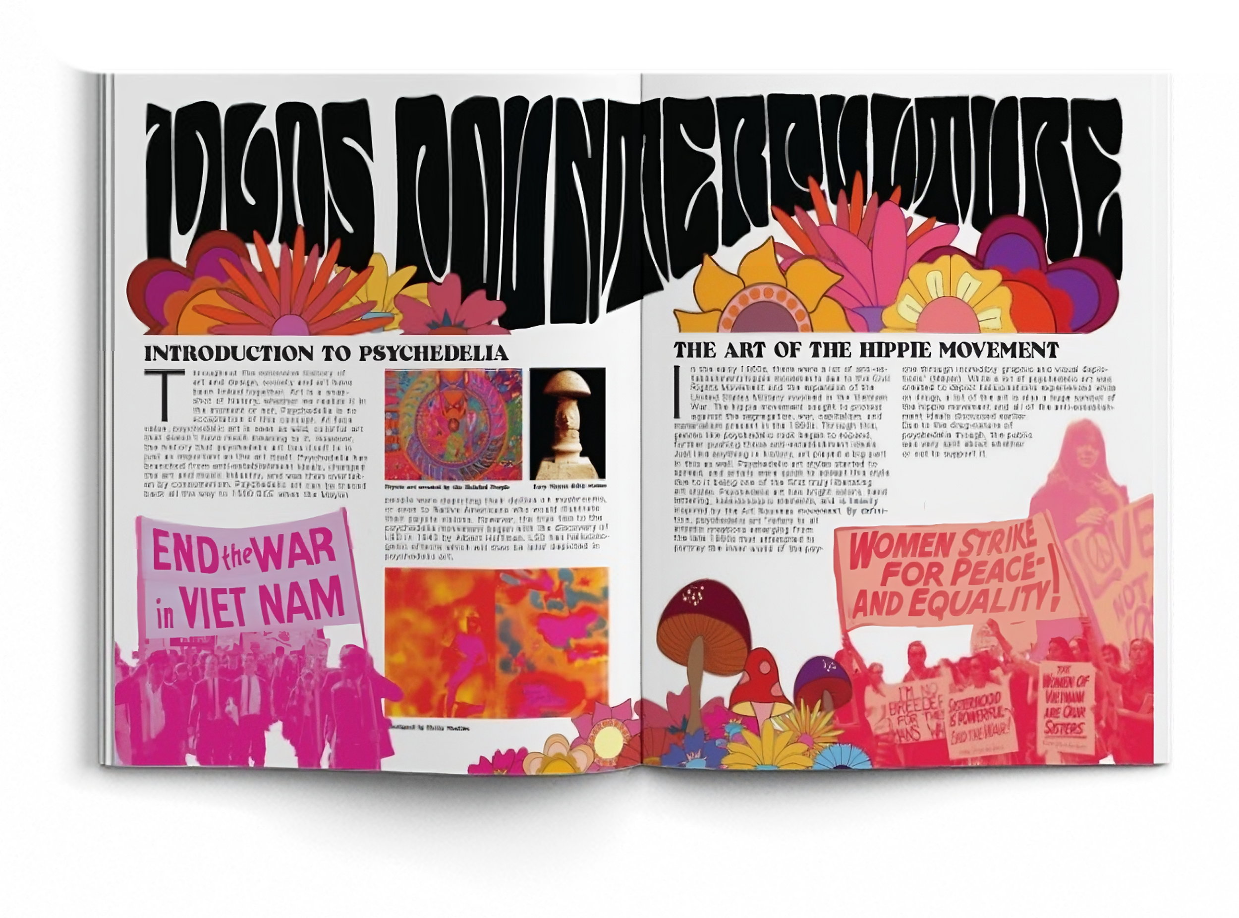 For this project, I had to create an informative book on the design history of psychedelic art. This book was a big challenge to create because I had to keep a good balance between the style of the book, but also make it look not too overwhelming.